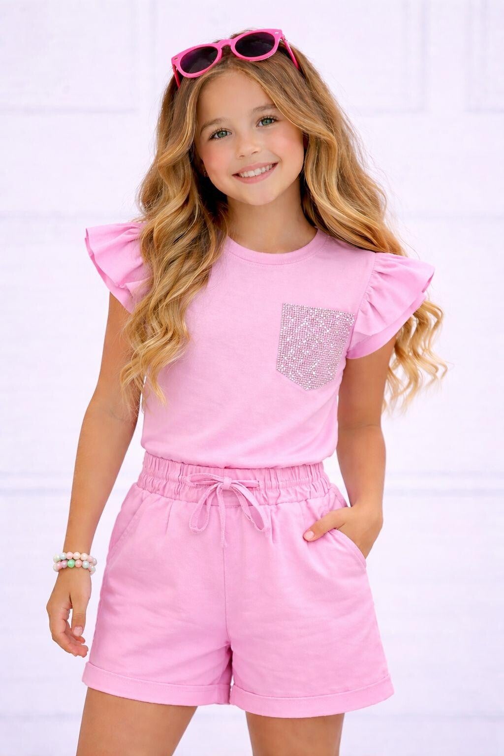 Glitter vlinder mouw set roze